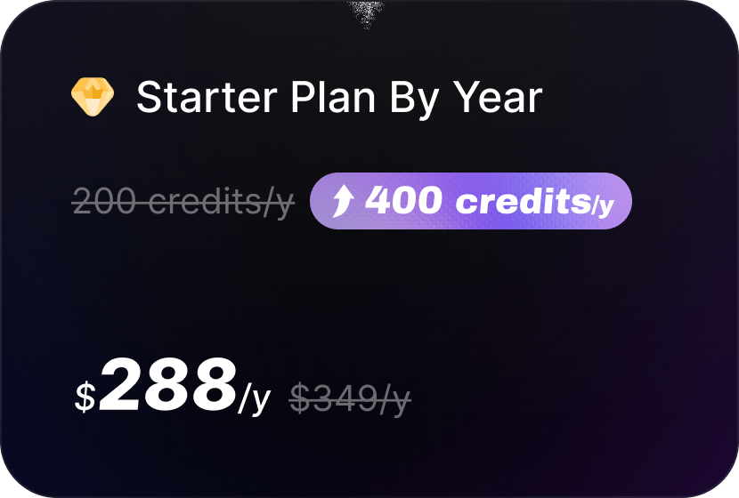 Offer: Get a chance to boost your credits with up to 100% extra credits, plus enjoy 50% off annual plans.
