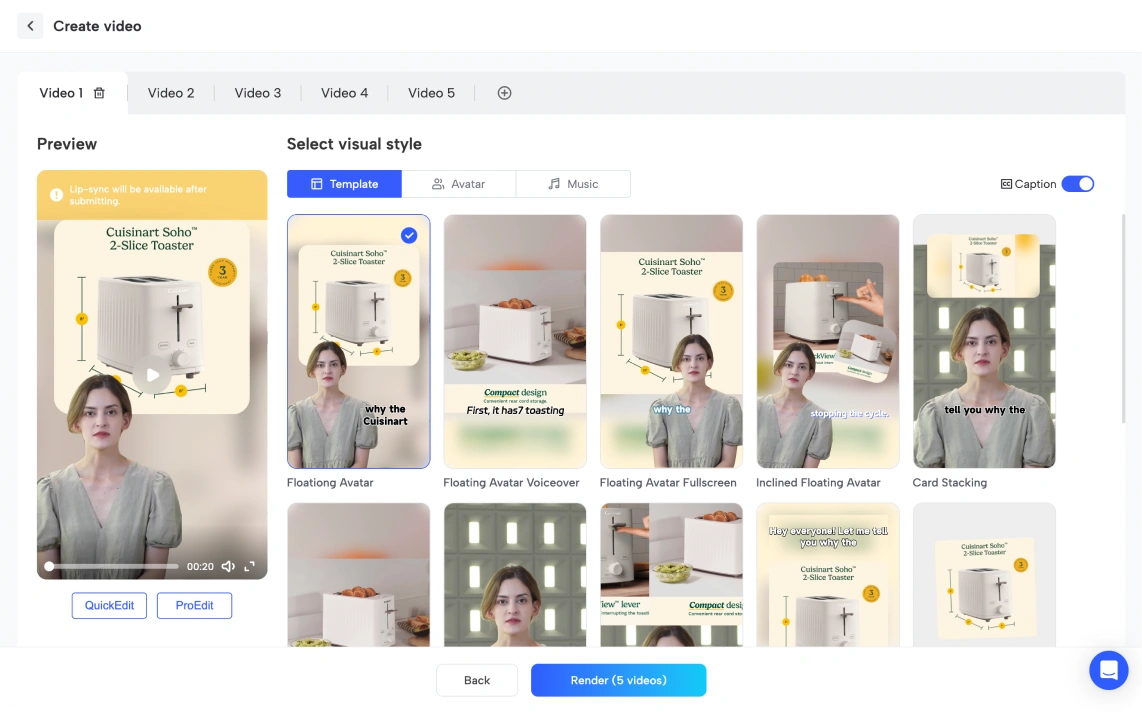 Create up to 100 videos in minutes instead of weeks with Batch Mode's automation.